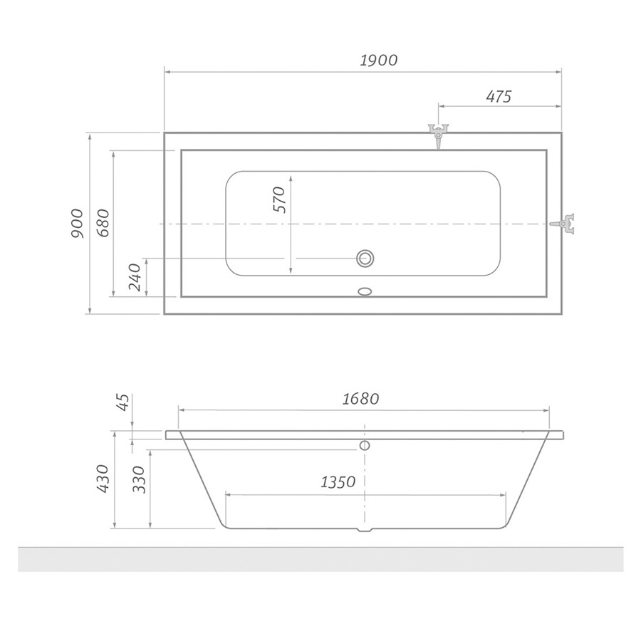 Domov Vane Obdĺžnikové vane Vaňa KUBIC – 1900×900