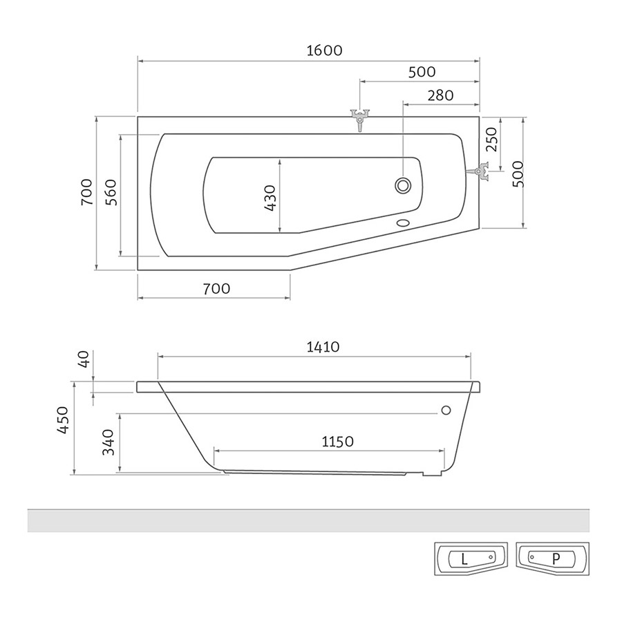 Asymetrická akrylátová rohová vaňa MINI s rozmerom 160 × 70 cm je vhodná pre ľavú (L) aj pravú (P) inštaláciu. Táto elegantná vaňa sa razom stane vhodným doplnkom každej kúpeľne.