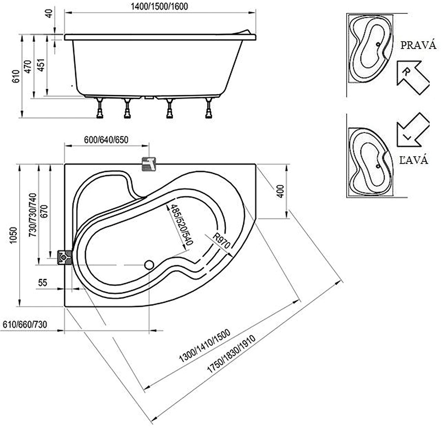Domov Vane Asymetrické vane Vaňa ROSA I 140×105 ľavá snowwhite
