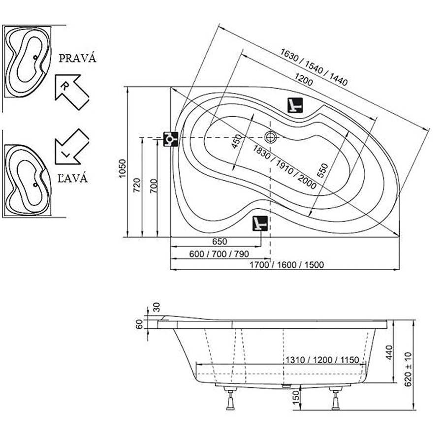 Domov Vane Asymetrické vane Vaňa ROSA II 150×105 ľavá, snehobiela
