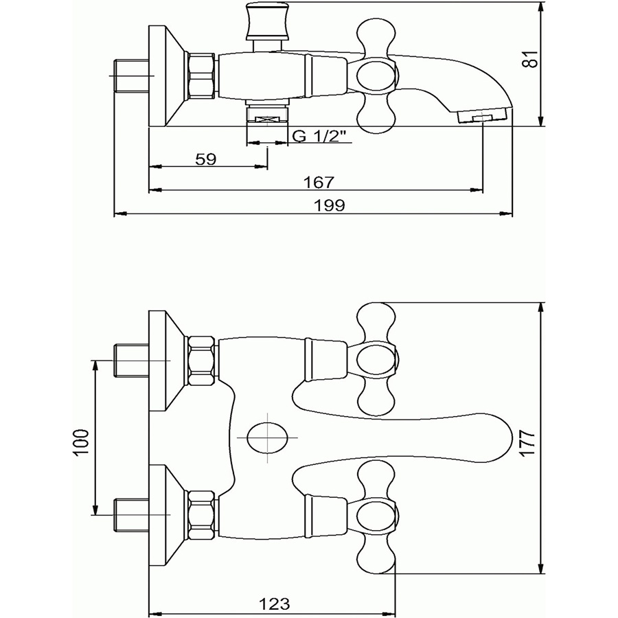 Kvalitné a odolné keramické ventily s 5 ročnou zárukou. Prvotriedne chrómové prevedenie. Vaňová nástenná batéria s rozostupom 100 mm a kovovým prepínačom.
