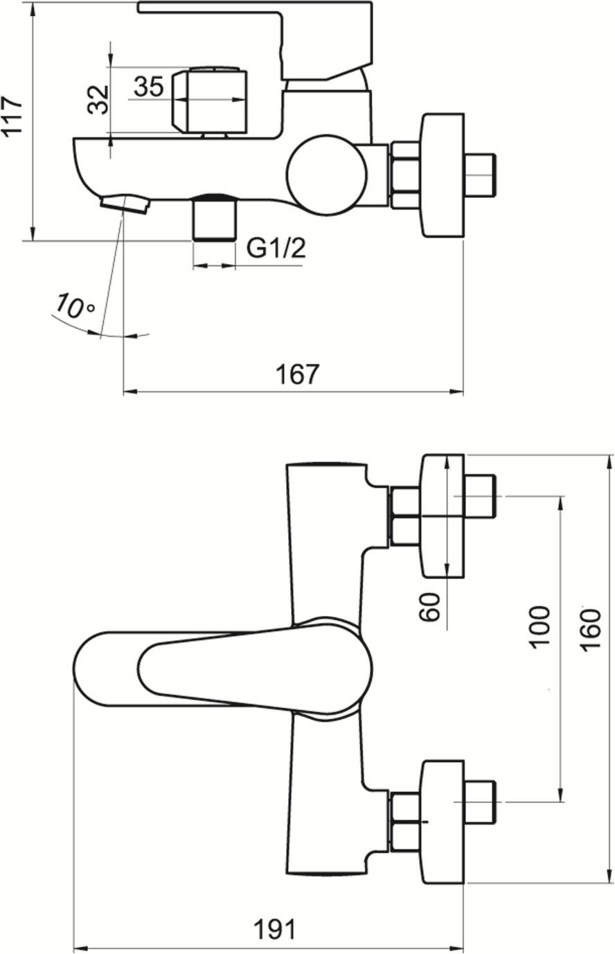 Vaňová nástenná batéria bez sprchovej súpravy 100 mm