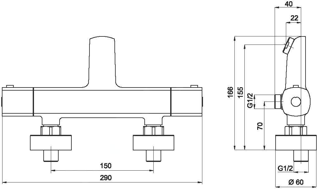 Vaňová batéria termostatická bez príslušenstva150 Metalia 58
