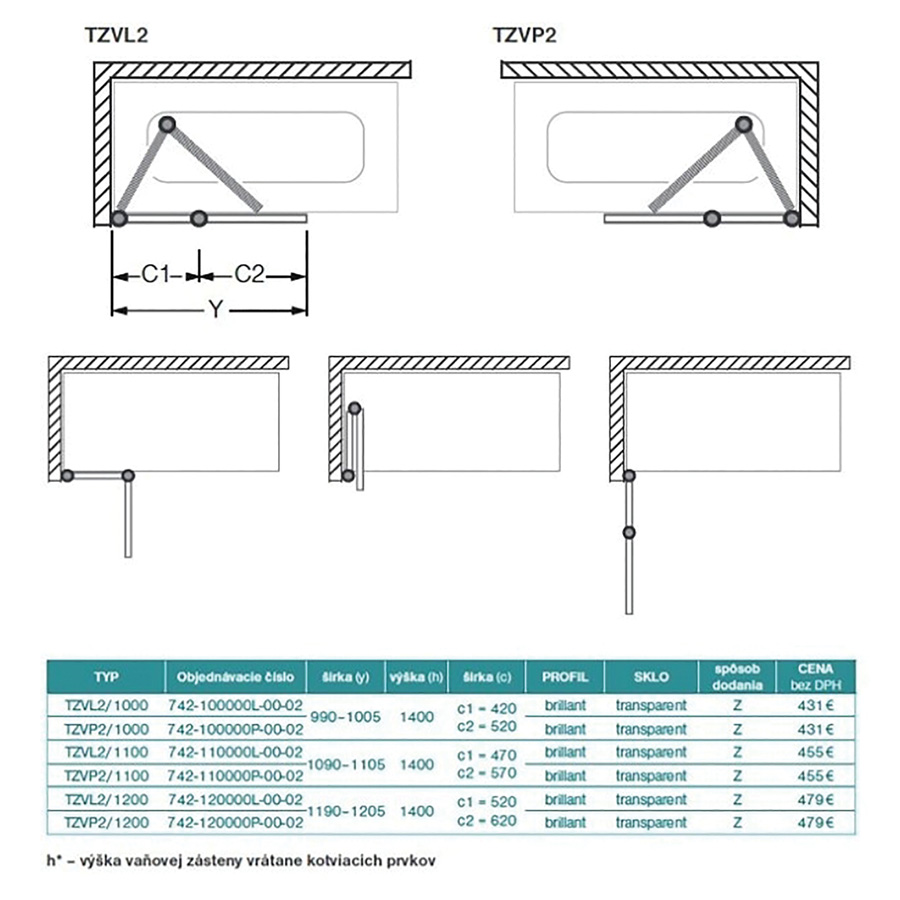Technický list k 122822 TZVL2 1100/1400 LH/ČS vaň.zástPDF icon