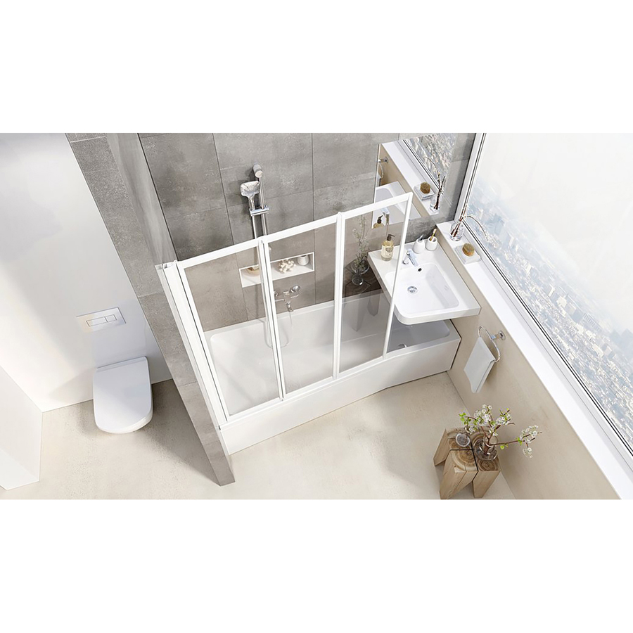 Zástena sa skladá z troch pohyblivých dielov, ktoré možno úplne zložiť do vnútorného priestoru nad vaňu. Vaňovú zástenu možno inštalovať na vaňu BeHappy IIa k obdĺžnikovým vaniam s rovným horným lemom (City, City Slim, Formy 01, Formy 02, 10°, Chrome, Classic, Campanula II, Vanda II) alebo na akúkoľvek klasickú obdĺžnikovú vaňu s rovným horným lemom. Štandardná výška zásteny je 1400 mm. Vaňová zástena VS3 100 je k vani BeHappy II 150 / 160, VS3 115 k vani BeHappy II 170. Vaňová zástena VS3 100 má v zloženom stave šírku 340 mm, k VS3 115 má šírku 392 a VS3 130 má šírku 444 mm. Otočením vaňovej zásteny VS3 o 180° získame variantu vstupu sprava či zľava. Vaňovú zástenu vieme riešiť na mieru.
