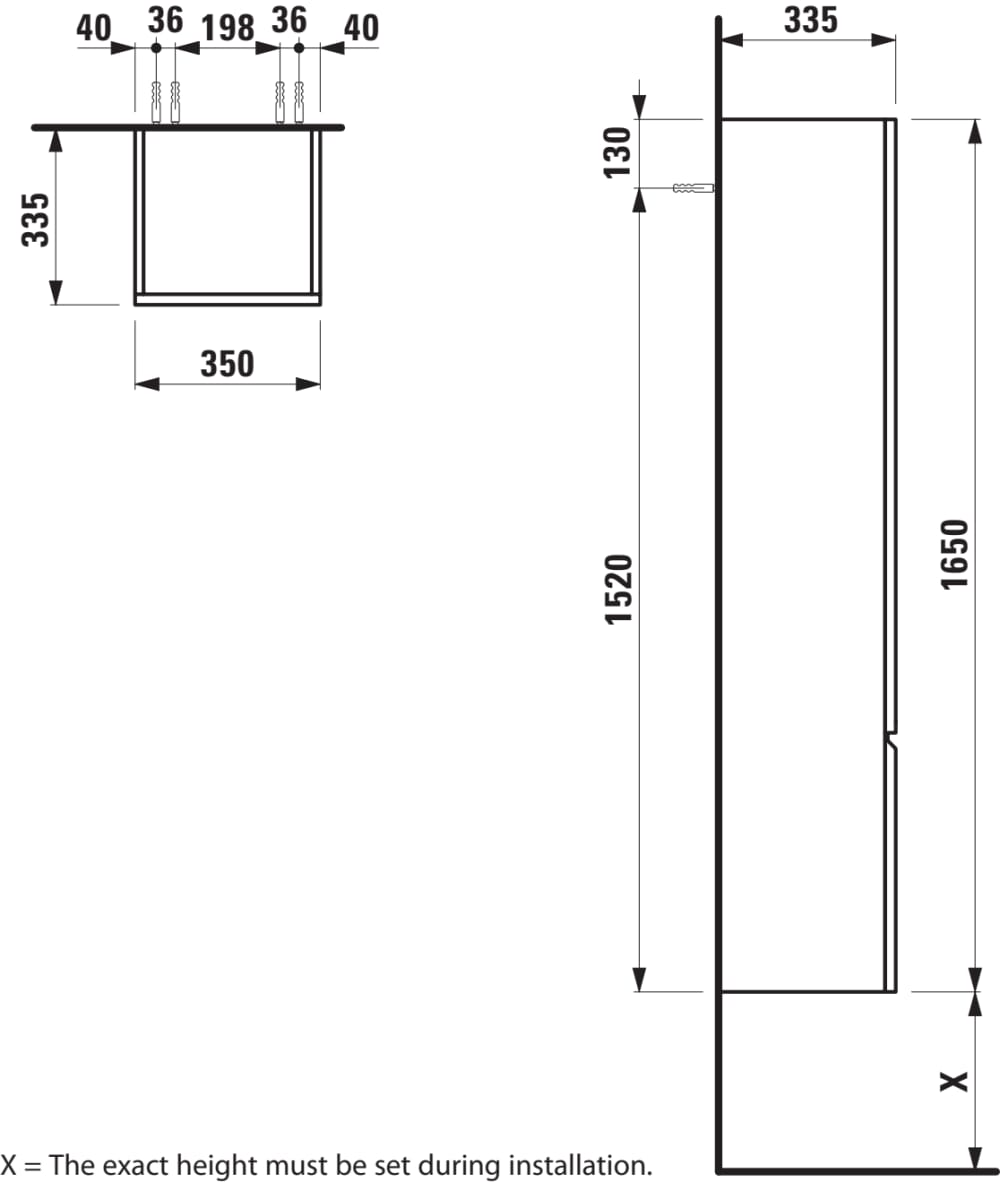Domov Nábytok Bočné skrinky Vysoká skrinka Laufen PRO S 35×33,5×165 cm, pánty vpravo, biela