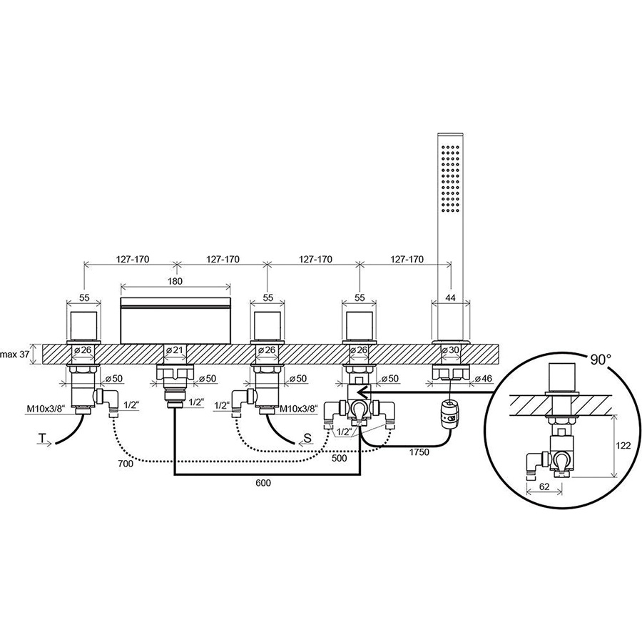 • prevedenie: So setom. Vaňové batérie s montážou na vaňu s dostatočnou šírkou a rovnosťou horného lemu – 3,4 alebo 5 otvorové.
