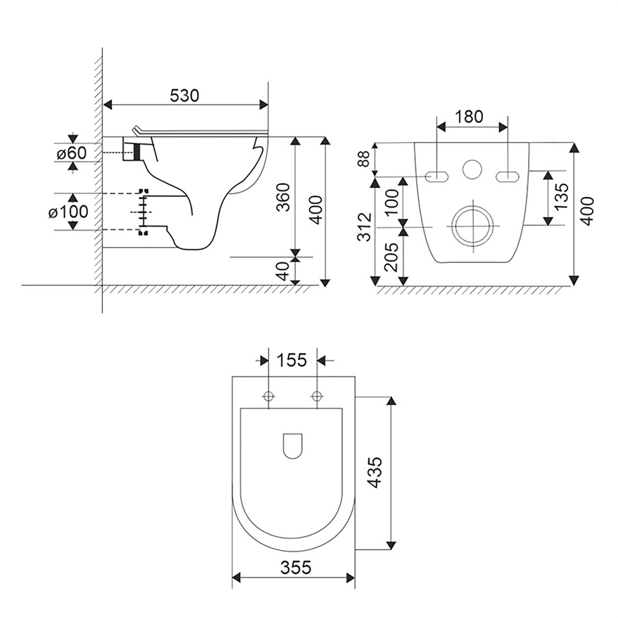 WC závesné, RIMLESS, 530x355x360, keramické, vr. sedátka CSS113S