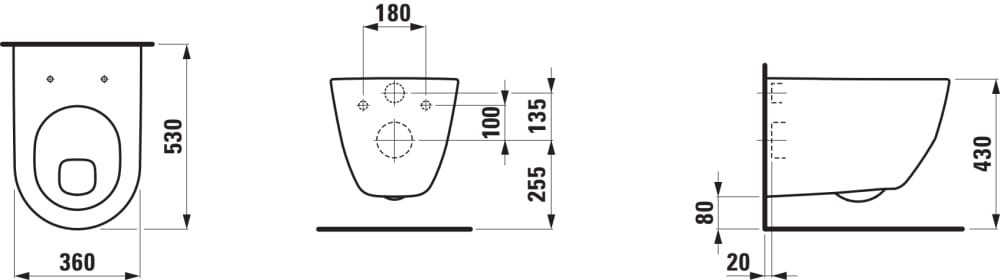 Závesný klozet Laufen PRO 530x360x350 mm, ploché splachovanie, biela
